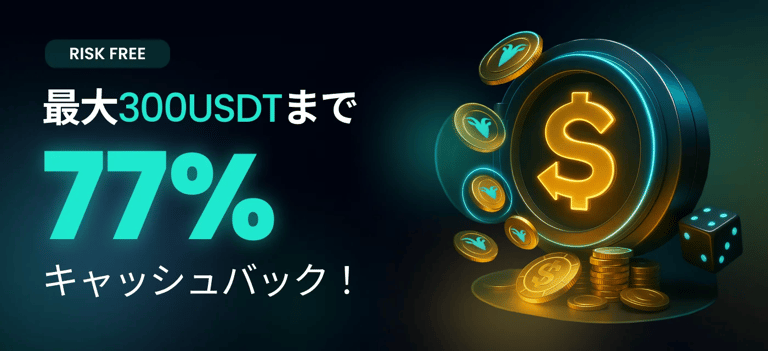 初回のスロットプレイは安心!運が味方しなくても、最大300 USDTまで77%キャッシュバックを受け取れます。