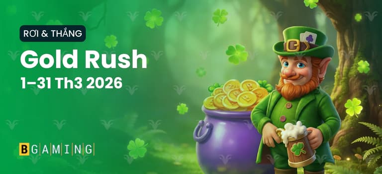 Thử vận may cùng Gold Rush trong tháng 3 này! Giành phần của bạn từ quỹ thưởng €70.000 (hoặc tiền điện tử tương đương) với 7.777 phần thưởng đang chờ đón. Quay để nhận thưởng vàng!